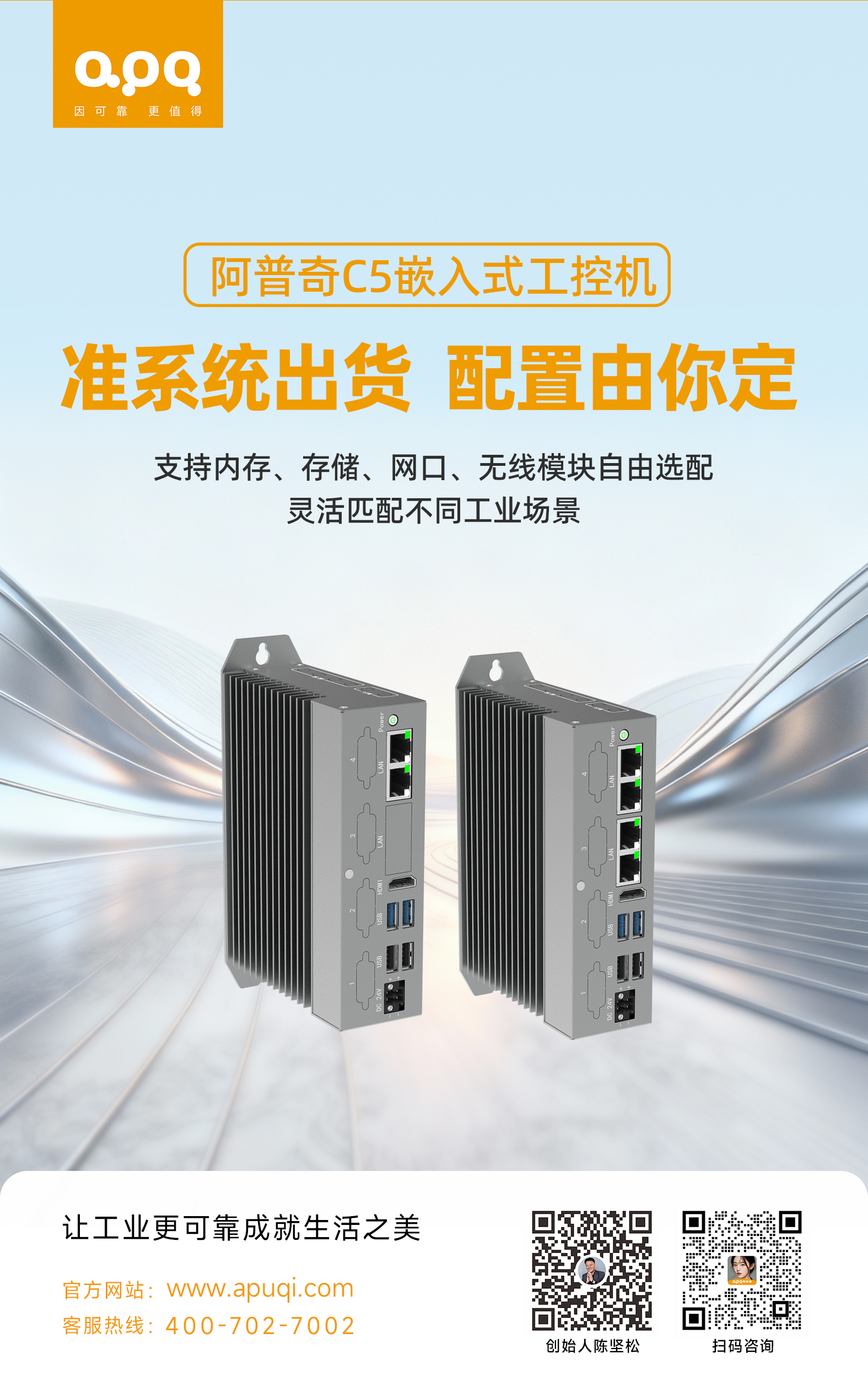 阿普奇C5系列嵌入式工控機,以小巧身形、準系統出貨、無風扇靜音為核心競爭力,不僅滿足工業現場對空間、噪聲與可靠性的嚴苛要求,更通過高度可定制的準系統模式,助力用戶快速構建貼合場景的專屬解決方案。