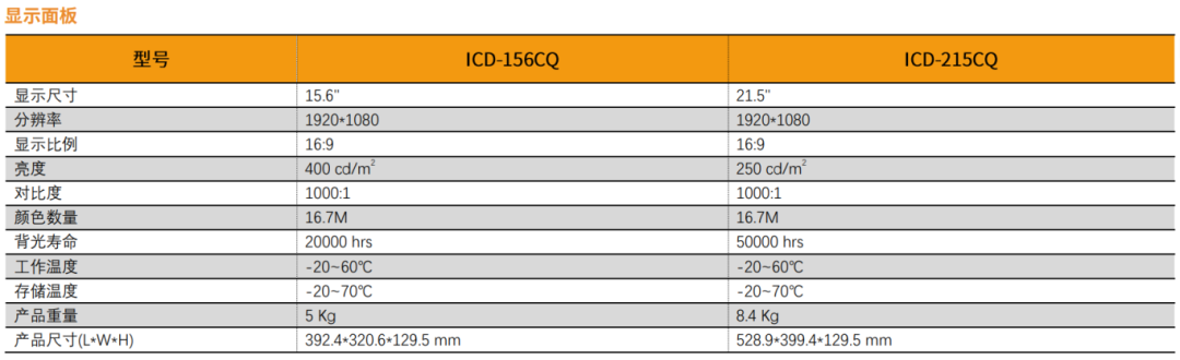 全高清分辨率:兩款型號(ICD-156CQ/ICD-215CQ)均標配1920*1080全高清分辨率,16:9顯示比例,畫面細膩。