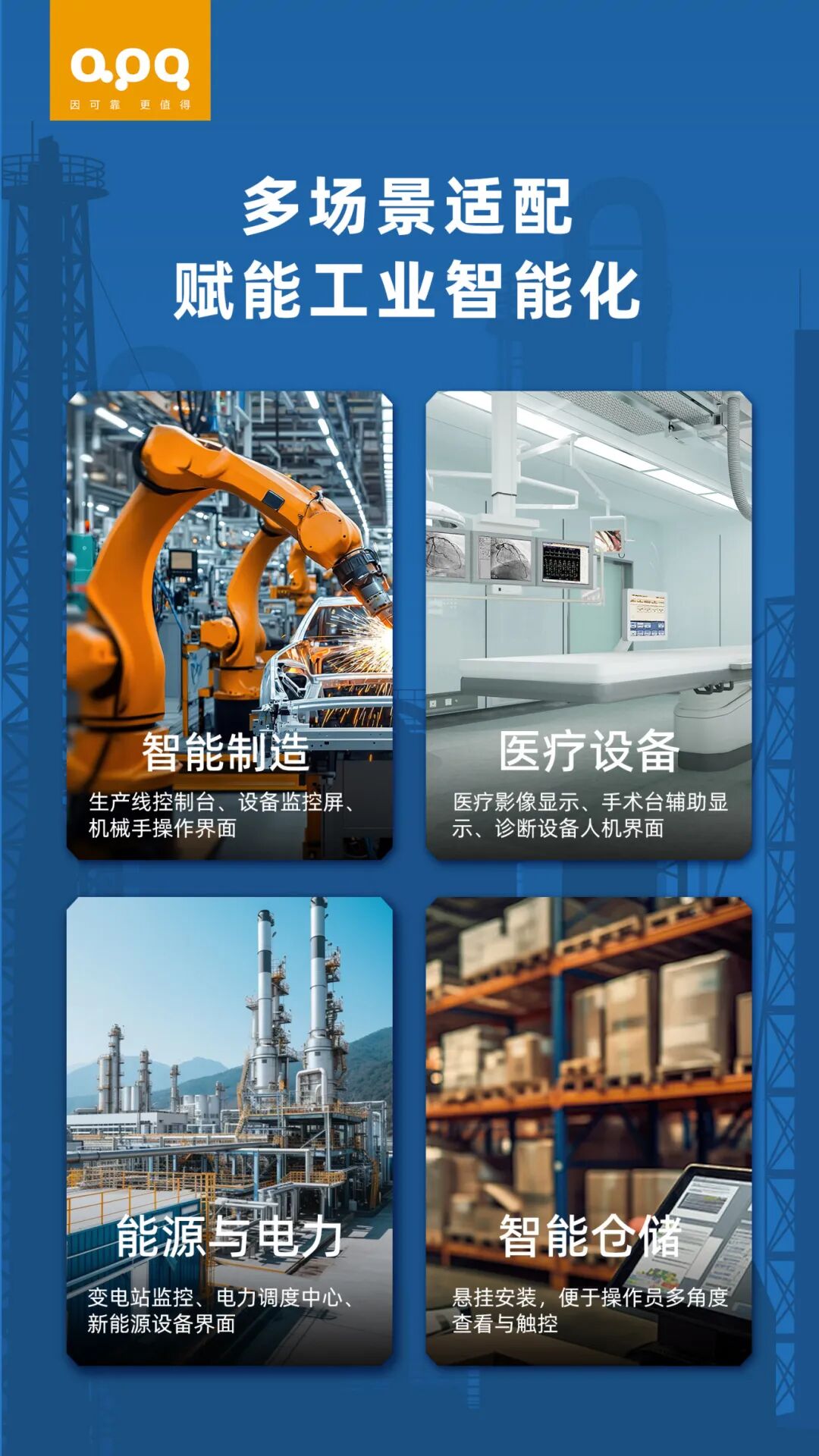 • 工廠生產線:設備狀態監控、生產數據看板、觸摸操作界面。